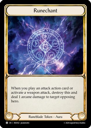 When you play an attack action card or activate a weapon attack, destroy this and deal 1 arcane damage to target opposing hero.