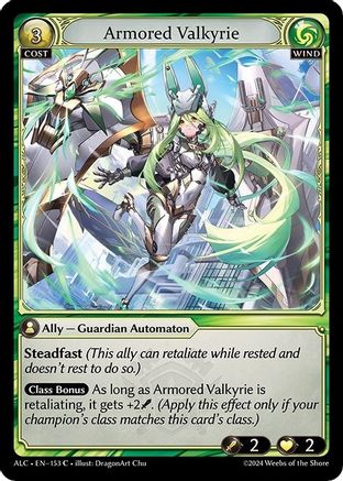 [Class Bonus] As long as Armored Valkyrie is retaliating, it gets +2 power. (Apply this effect only if your champion's class matches this card's class.)
