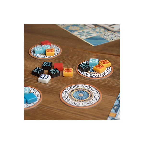 Welcome to Azul, the tile-placement game fit for a monarch! Engage in thrilling competition as players strive to achieve the highest score. Strategically claim tiles and skillfully arrange them on your board to earn points. Immerse yourself in the challenge, collecting sets of the same color or creating intricate patterns for additional rewards. But beware, taking tiles you cannot use will result in penalties. Every move you make impacts your rivals' choices, so tread carefully and make decisions that benefit you without aiding them too much. Get ready for an exhilarating experience where strategy and cunning are key!